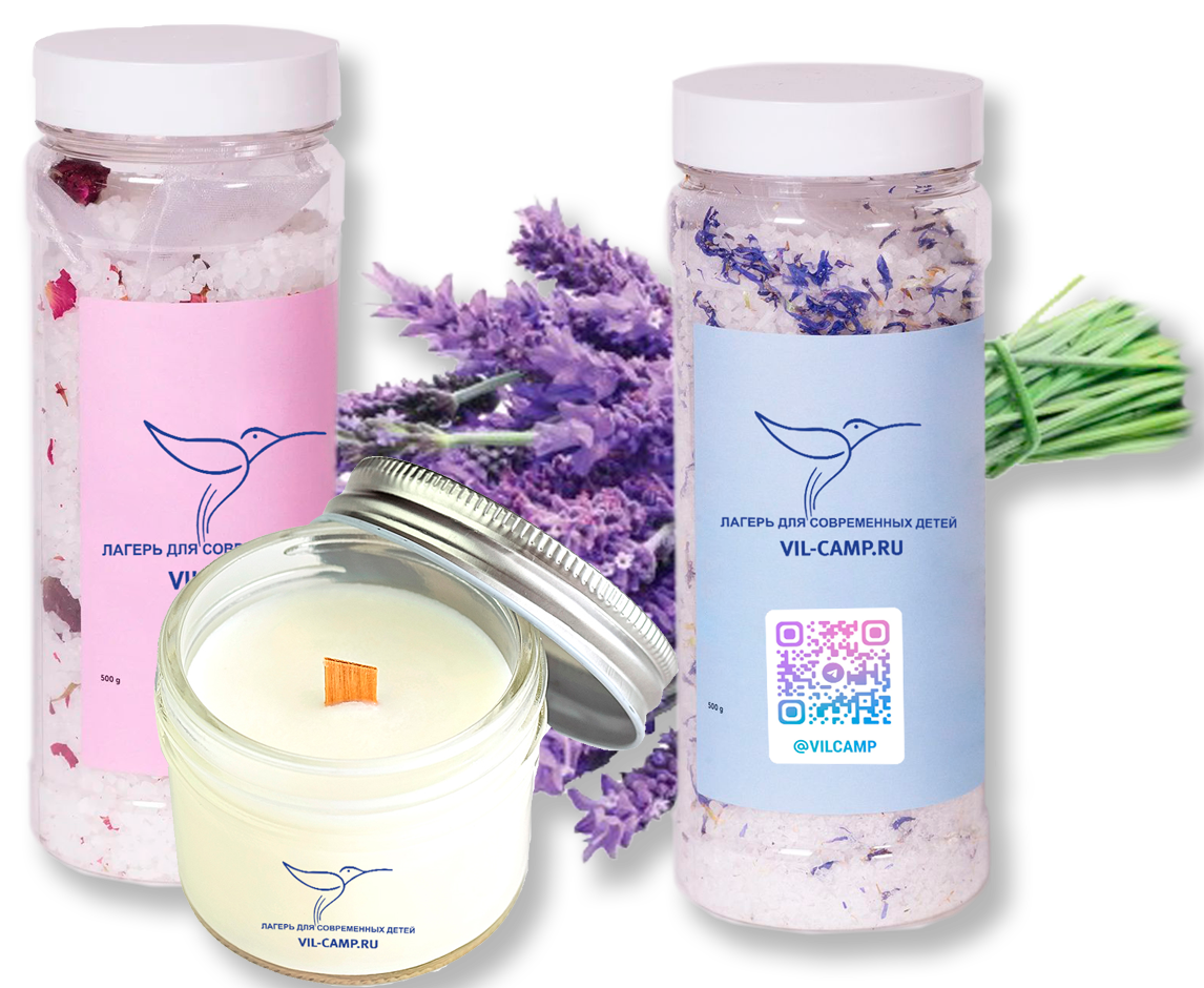 Со всей душой и заботой ребенок создаст аромосвечку и цветную соль для ванн с сухоцветами, которые будут бережно упакованы для вручения Вам – любимой маме!